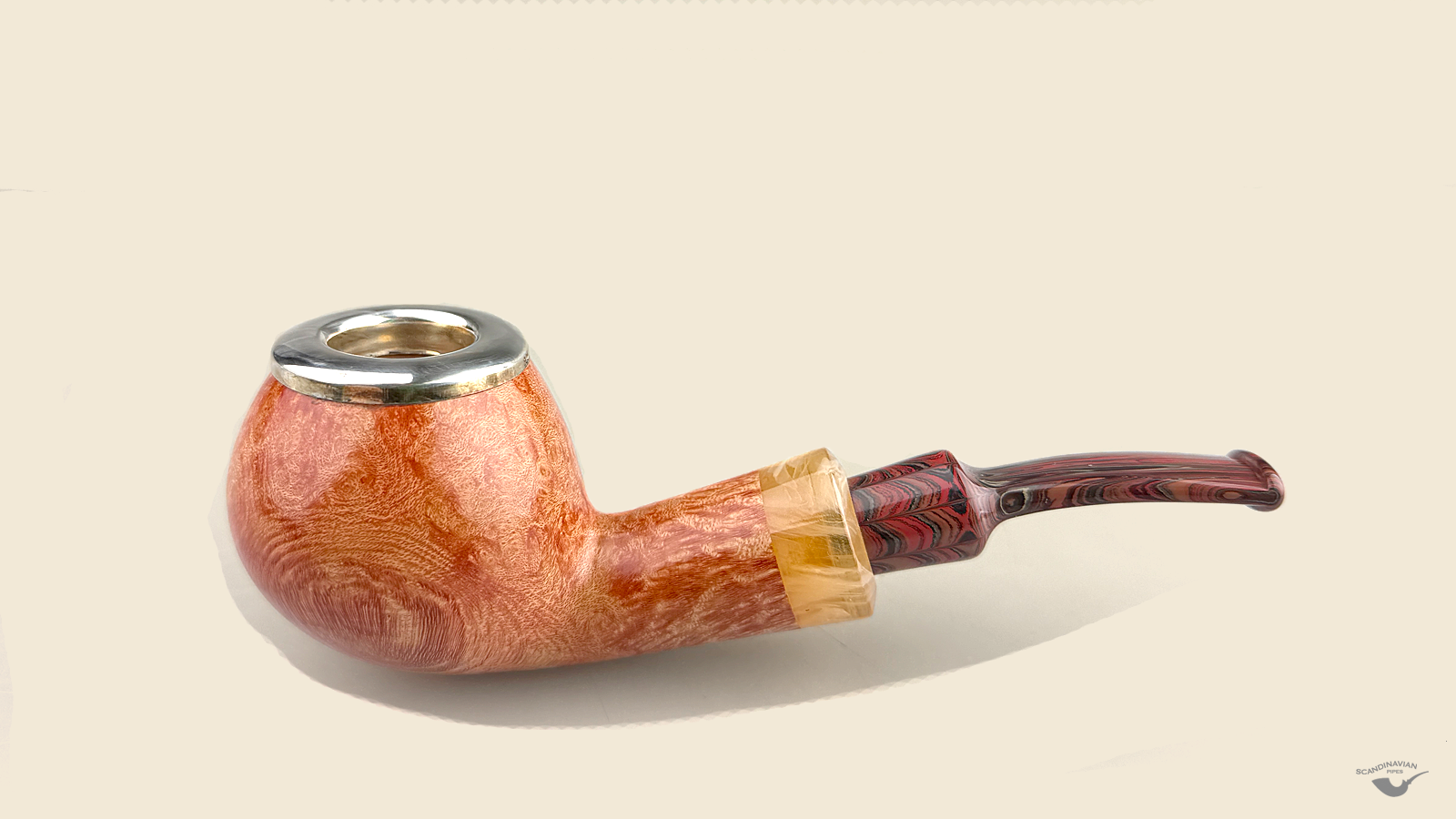 Silver Cap Apple with Resin and mouthpiece with handcut ebonite SEM, Phonix grade
